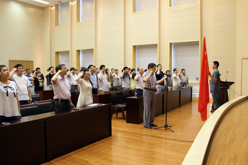 首先,在党委委员秦伟同志的带领下,3名预备党员进行了入党宣誓、全体党员面对党旗重温了入党誓词;随后,研究所党委书记兼副所长高玲瑜作了讲话。高玲瑜书记与全体党员一起,回顾了中国共产党的成立、建设和发展历程。他指出,历史充分证明,中国共产党无愧是中国特色社会主义事业的坚强领导核心。十八大以后,以习近平同志为核心的党中央领导开展党的群众路线教育实践活动,坚定不移地惩治党内腐败,提出了全面深化改革的总目标和总举措,再次证明了我们党有自我净化、自我完善、自我革新、自我提高的能力。他希望全体党员能把思想统一到党中央和习近平总书记系列重要讲话精神上来,统一到党的十八届三中全会的战略部署上;围绕国家对科技发展提出的改革创新要求,结合中科院“四个率先”行动计划,结合研究所的创新发展,时刻牢记中国共产党党员的身份,铭记中国共产党党员的责任,为了中国梦的实现,团结一心、协作创新。