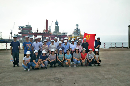 7月5日,党员们来到中集来福士海洋工程有限公司烟台基地,参观了“蓝鲸1号”双井架钻井平台、Hex Box深海养殖网箱、“智慧海上城市”、海洋牧场平台等自升平台 、半潜平台、海工特种船舶等系列产品线,学习了企业走自主创新发展之路、开展高端海洋工程设备自主设计研发制造的管理理念。