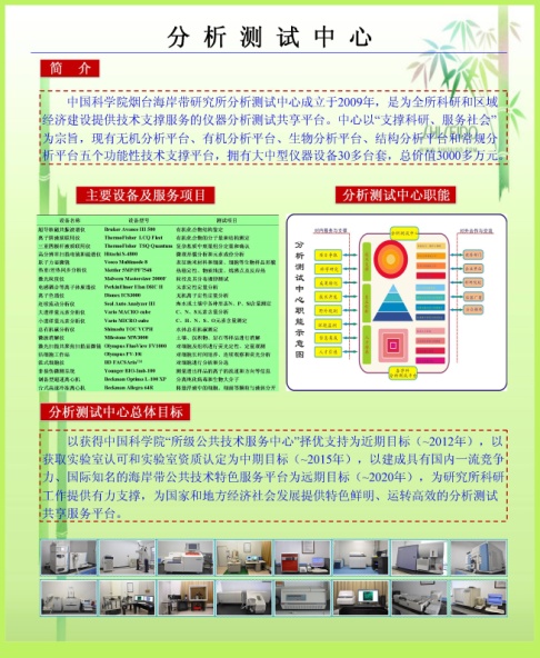一是精心制作了仪器功能介绍,并以邮件的形式发给所内科研人员,为科研人员更好地了解仪器设备提供了便利;二是对中心所辖二十余台仪器情况作了介绍,如型号、生产厂家、主要配件、功能以及应用等方面的基本信息,展板右上角配有实体拍摄图片,整个展板简洁明了,方便来访的所内外科研人员了解仪器设备的运行情况;三是对中心网站进行了升级,更新了仪器的型号、性能指标和功能介绍等信息,进一步强化了网站功能,有利于更好地发挥网站这一有效平台的作用。
