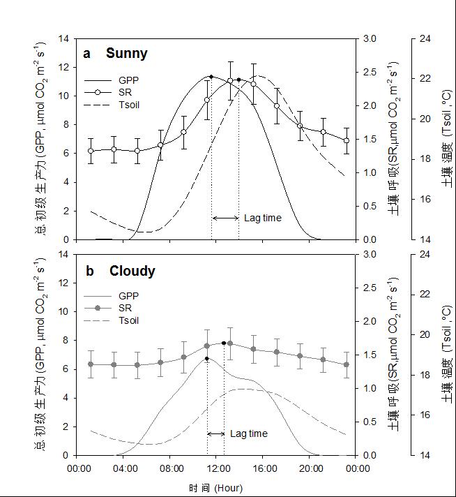 日尺度上植被冠层光合作用对土壤呼吸的调节作用及其时间间隔