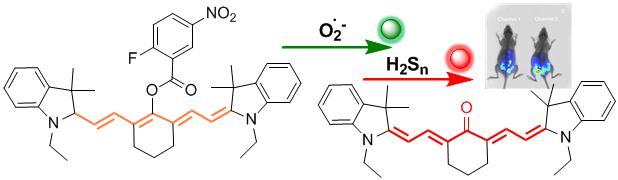 健康的生态环境是人类生存发展的物质基础,环境受到破坏将危害人类健康。生物细胞内活性硫物种在调节环境和人体平衡方面起着重要的作用。“活性硫物种”是含硫生物分子的集合名词,该类分子作为硫信号转导的关键位点,在生命体的生理和病理过程中发挥着至关重要的作用。硫化氢(H2S)作为活性硫物种家族的一员,其对环境的毒性和毒害影响几个世纪以来备受研究人员的广泛关注。然而,近来有关生命体的内源性H2S的研究发现,H2S是继一氧化氮(NO)和一氧化碳(CO)之后的第三个具有生物活性的气体,被称为“气体递质”或“气体介体”。目前的研究普遍认为H2S是硫信号转导分子,但是又有新的研究表明,在硫信号转导过程中,实际转导分子是H2S直接转化的硫烷硫(RSSnSH/RSSnSR),而不是H2S。众所周知,高浓度的H2S具有很强的细胞毒性,而硫烷硫的细胞毒性很低。在细胞氧化还原信号过程中,活性氧物种的爆发和硫烷硫的产生都是在很短的时间内发生,其中半胱氨酸参与的氧化还原过程独立于谷胱甘肽的抗氧化系统之外。由于缺乏直接的检测工具,检测活性氧物种的爆发和活性硫的实时生理作用受到了挑战。与其他生物检测技术相比,荧光生物成像技术已成为检测细胞内活性物种的强有力工具。该技术具有很多优势,如高时空分辨率、非侵入性、灵敏度高、选择性好、快速反应等,尤其是近红外荧光能够实现最大化生物样品穿透和避免背景荧光信号的干扰。
