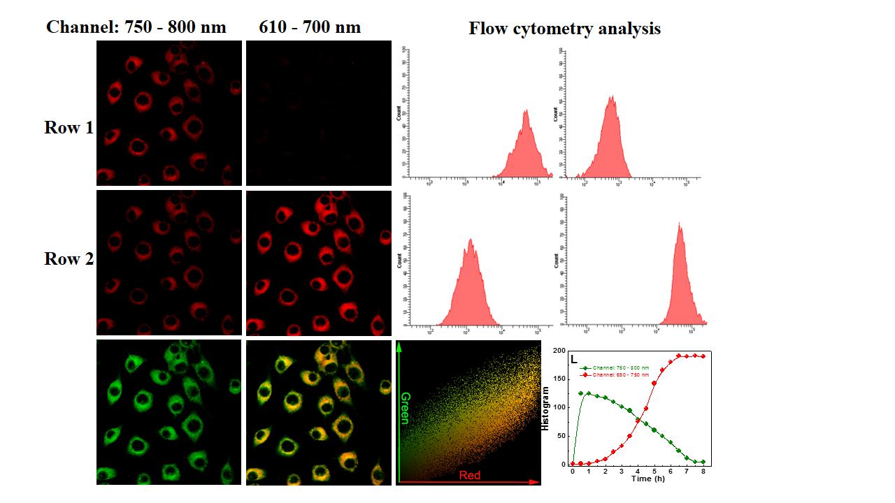 中科院烟台海岸带研究所陈令新研究员带领的“环境分析监测理论与工程技术”研究团队,立足“环境—健康”效应研究,积极布局生物荧光检测的基础研究和技术开发,取得了联动检测环境胁迫下活性氧物种参与下的活性硫物种交互响应的系列突破。研究人员设计并合成了一系列多响应近红外荧光探针(HCy-FN、Mito-ss和Cy-NB等),利用多通道荧光信号,实现了原位、实时检测细胞内活性氧物种的爆发和活性硫物种的交互响应。激光共焦显微成像结果证实了该探针可以原位实时检测细胞线粒体内和活体小鼠内的活性氧物种的爆发和活性硫物种的交互变化,流式细胞仪分析进一步证实了成像结果。这些研究成果表明,所开发的多响应探针能够作为直接的检测工具,用于检测活细胞和活体小鼠内活性氧物种的爆发和活性硫物种的变化,从而实现了在分子、细胞和活体三个层次上对活性氧物种和活性硫物种进行原位、动态的荧光成像分析。该研究不仅对阐明细胞内活性氧和活性硫关联生成机制具有重要意义,还可望为活性硫作为真正的信号转导分子的机理研究奠定基础。