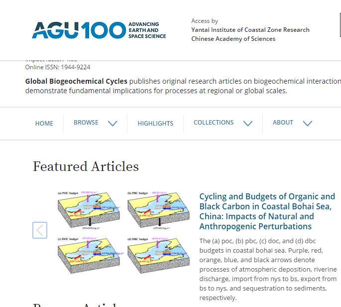 相关研究成果发表在国际地学领域TOP期刊Global Biogeochemical Cycles以亮点文章形式发表(见图3)。