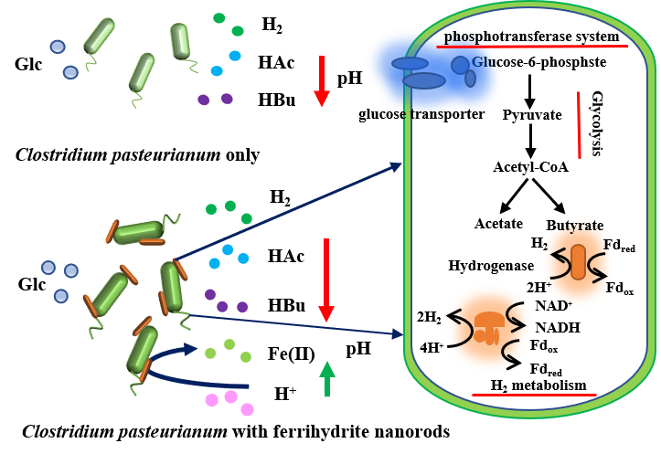 图2. 水铁矿还原促进Clostridium pasteurianum 产氢途径