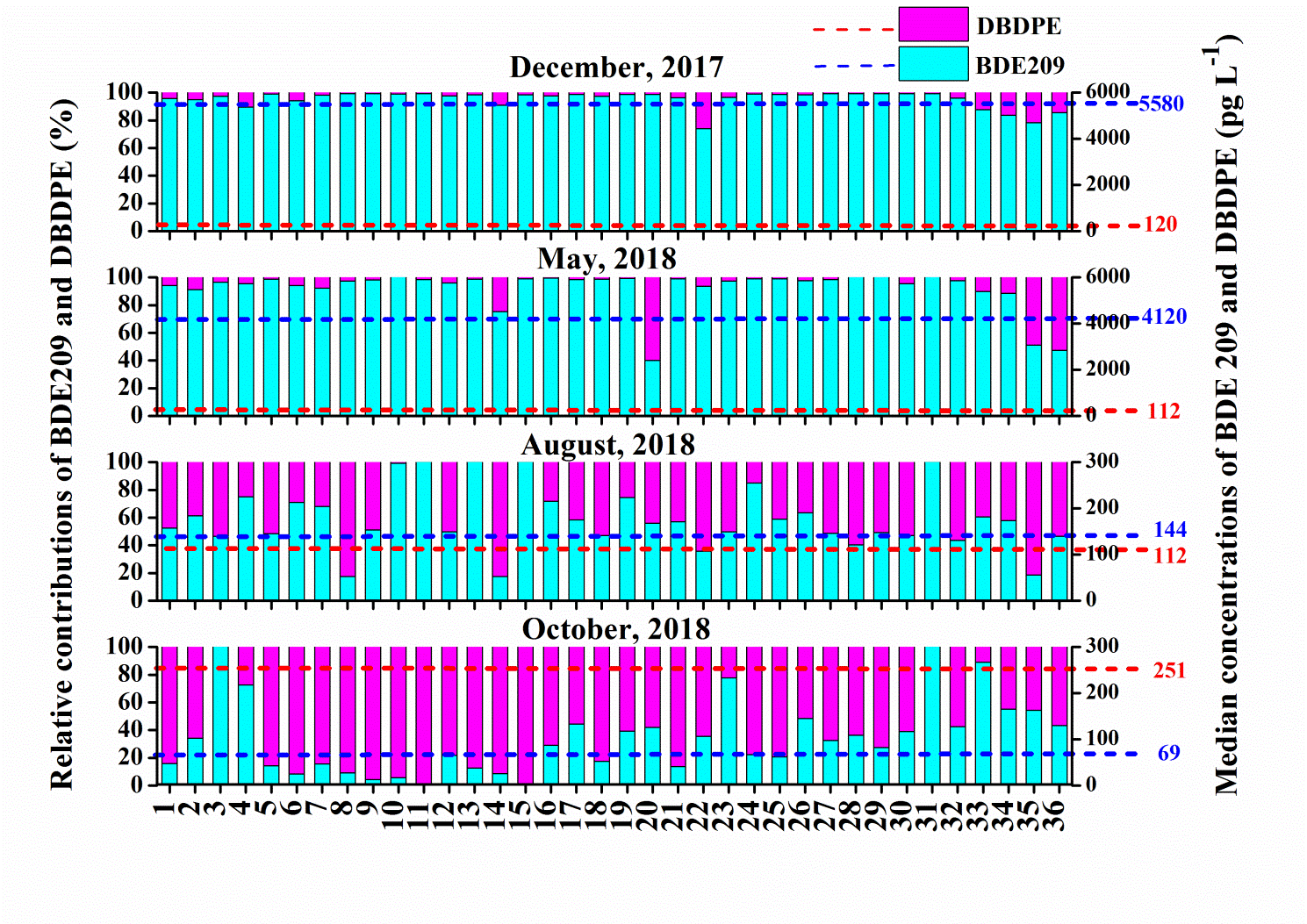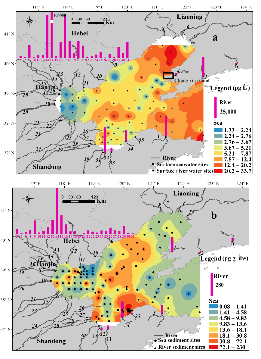 卤代阻燃剂(HFRs)是一类广泛应用于塑料、电子产品、纺织品、家具、建材等物品中人工合成类有机化合物。因其对生态系统和人的健康影响,HFRs中的五溴、八溴和十溴二苯醚先后被列入持久性有机污染物清单中受到管控,而一些新型替代品,如十溴二苯乙烷(DBDPE)和德克隆(DPs)的生产与使用量开始增加,并在环境中不断检出。山东莱州湾区域是我国最大的溴系阻燃剂(BFRs)生产基地之一。渤海是我国的内海,受人类活动影响强烈,溴系阻燃剂的污染问题也逐渐被引起重视。