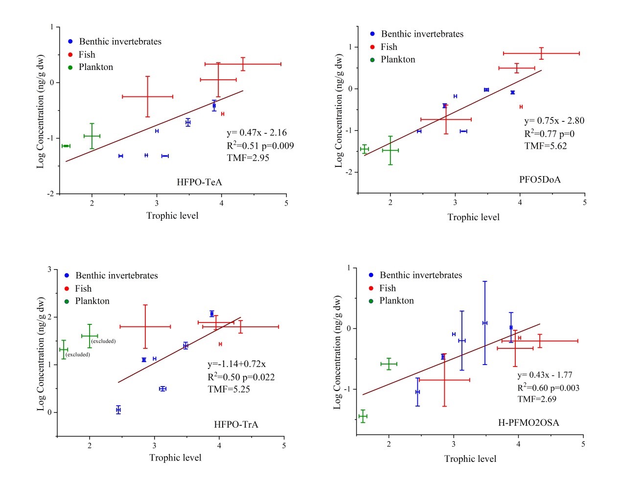 Li Y N, Yao J Z, Zhang J, Pan Y T, Dai JY, Ji CL, and Tang J H. First report on the bioaccumulation and trophic transfer of perfluoroalkyl ether carboxylic acids in estuarine food web. Environmental Science & Technology, 2022, 56, 10, 6046-6055.