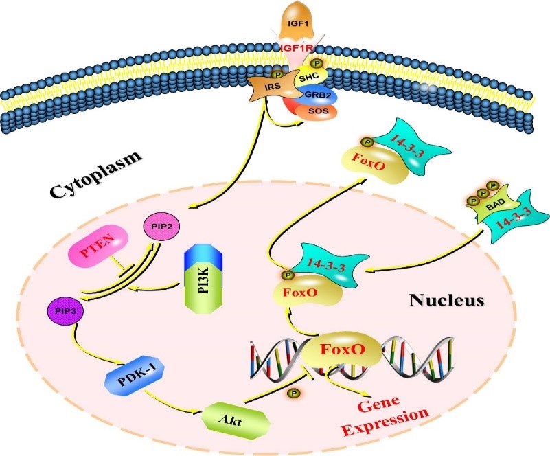 图1. FoxO和PTEN参与衰老和寿命调控的IIS通路