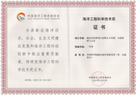 近日,中国海洋工程咨询协会颁发2022年度海洋工程科学技术奖获奖证书,名贯彩票陈令新研究员团队完成“海洋环境典型污染物分子识别、分析原理与方法”成果荣获该奖项一等奖。