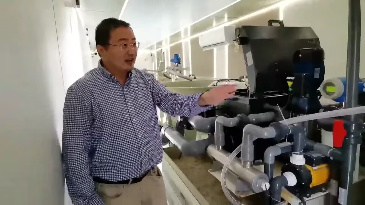 图1 吕剑研究员介绍循环水养殖系统