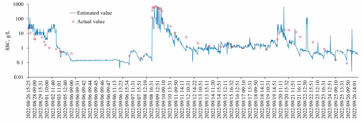图2 上游清水河流域团高光谱站的悬浮泥沙浓度时间序列(红圈为手工监测结果)