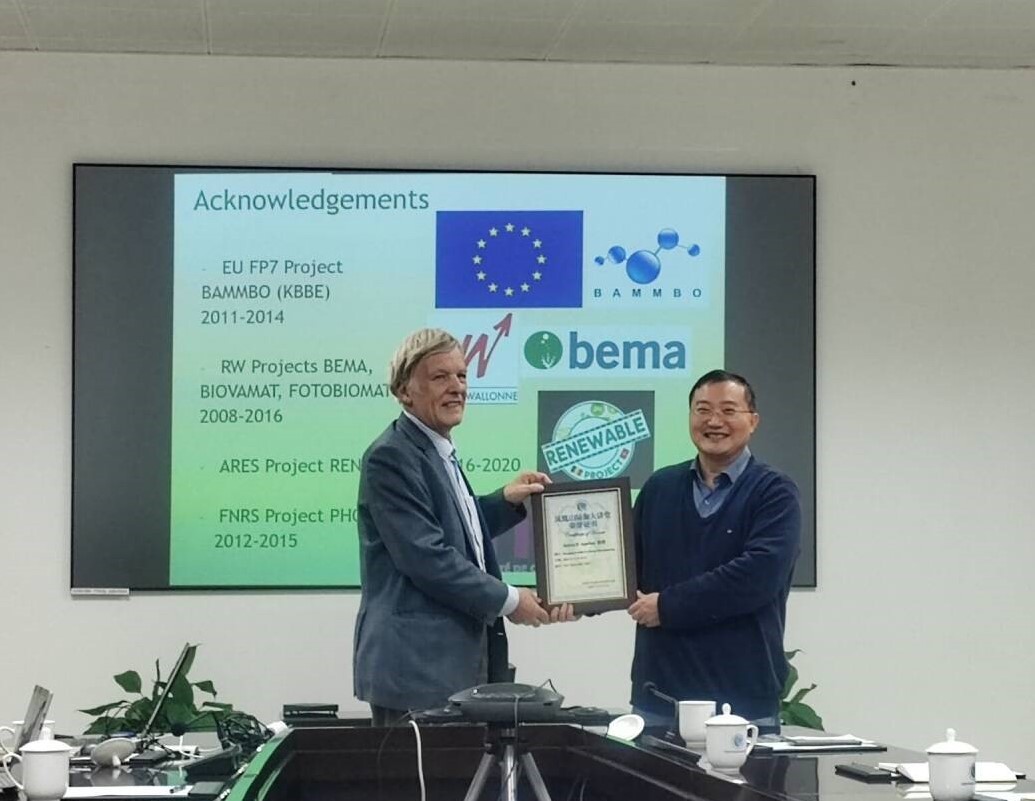 访问期间,Spiros Agathos院士做了题为“Emerging Frontiers in Marine Bioengineering”的学术报告,深入探讨了海洋生物工程领域的最新进展和未来研究方向。报告指出,随着气候变化和资源枯竭问题的加剧,海洋作为人类未来发展的重要资源,其生物工程潜力正在成为全球关注的焦点,报告还分享了Agathos教授研究团队在新型光生物反应器研发领域的最新成果。针对海洋污染和生态退化问题,Spiros Agathos院士介绍了基于海洋微生物和植物的生物修复技术(主要针对重金属污染清除和油污降解),强调了开发海洋生物资源的“可持续性优先”原则。吕剑研究员为Agathos教授颁发凤凰山陆海大讲堂证书。