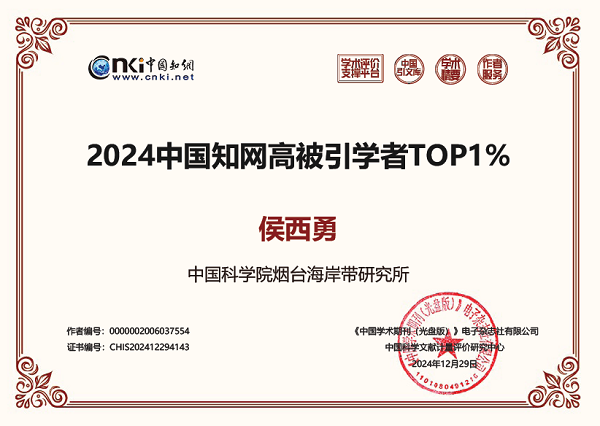 名贯彩票侯西勇研究员入选“中国知网高被引学者Top1%”名单。本次评选的评价指标为作者发表的高于理论平均值(1.65)的论文引证标准化指数(PCSI)的加权求和。“2024中国知网高被引学者TOP1%”入选条件:近十年发文作者总PCSI位于初选作者范围的TOP1%(共计学者3万人,基线值为31.016),且近十年发表PCSI高于理论平均值(1.65)的论文不少于5篇以及近十年至少发表1篇高影响力论文。