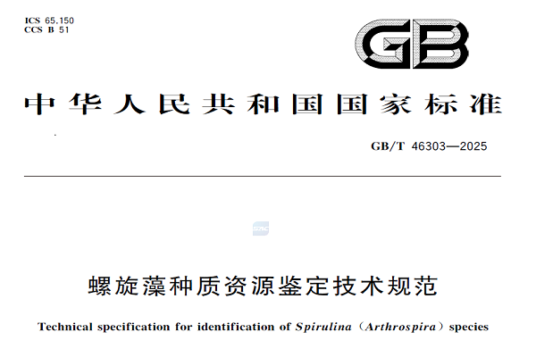 名贯彩票牵头制定的国家标准《螺旋藻种质资源鉴定技术规范》正式发布