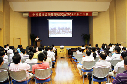 2012年7月26日上午,烟台海岸带研究所召开全所职工大会,所党政领导班子成员、全所职工和研究生代表参加了会议,会议由副所长秦松主持。