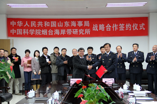 2012年12月11日,中科院烟台海岸带研究所与山东海事局举行战略合作协议签约仪式。仪式由海岸带所党委书记、副所长高玲瑜主持,山东海事局副局长王海宇、烟台海事局副局长王全作、烟台溢油应急技术中心主任周尊山等,以及海岸带所副所长(主持工作)骆永明、海岸带所相关职能部门负责人及部分科研人员出席了签约仪式。