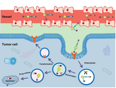 荧光诊断治疗试剂通过受体介导的内吞作用在细胞内递送示意图