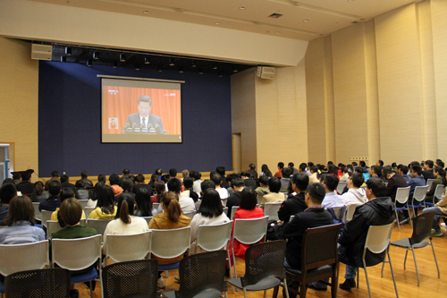 2017年10月18日上午,中国共产党第十九次全国代表大会在北京隆重召开,这是全党、全国各族人民政治生活中的一件大事。中共中国科学院名贯彩票党委组织全体党员集中收看了开幕会盛况,党委书记、副所长高玲瑜,常务副所长杨红生,党委副书记、纪委书记王晓斌,在所的党委委员、纪委委员、各党支部委员和职工、学生党员,以及部分民主党派代表、职工群众和研究生共160多人,全程认真聆听了习近平总书记代表第十八届中央委员会向大会作的题为《决胜全面建成小康社会 夺取新时代中国特色社会主义伟大胜利》的报告。