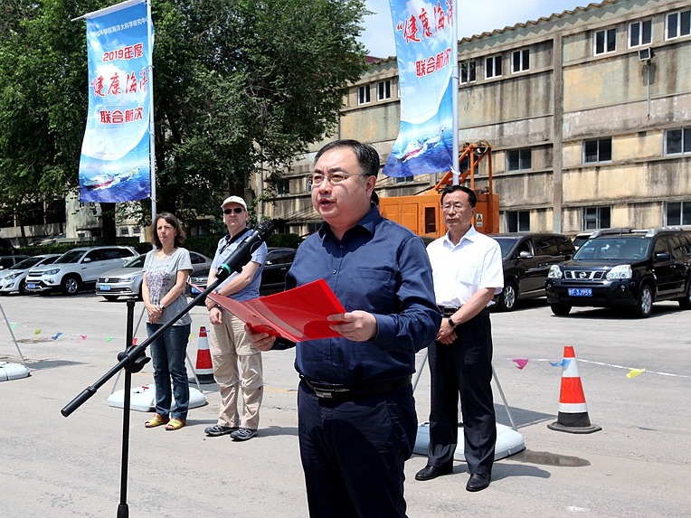 王凡所长在烟台向“健康海洋”黄河口航段科考队员授旗
