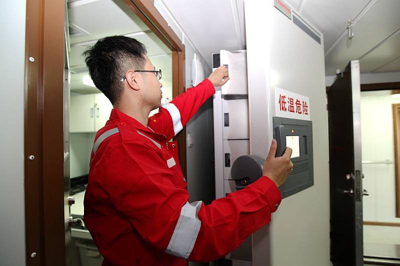 科考人员出航前检查超低温冰箱运行情况