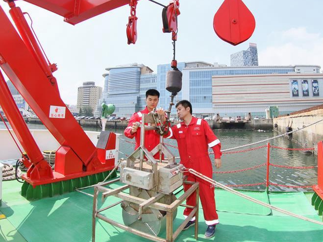 科考人员出航前进行设备检查