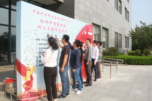 参加承诺签名的职工和研究生们纷纷表示,会积极响应《倡议书》号召,从自身做起,不忘科技创新为民的初心,积极弘扬和践行科学家精神,牢固树立科研诚信之风,为建设海洋强国贡献力量,以实际行动庆祝祖国70周年华诞。