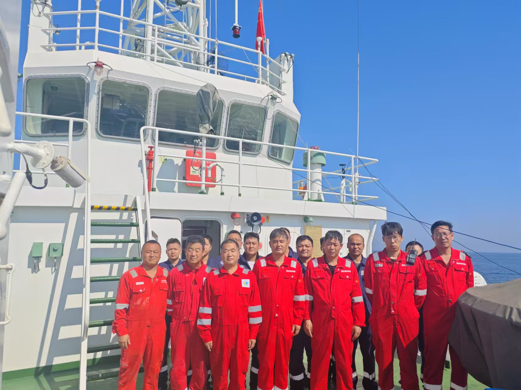 上午8时30分,升国旗仪式正式开始。在激昂的国歌声中,五星红旗迎着朝阳冉冉升起,全体人员肃立行注目礼,表达对祖国的无限热爱与崇高敬意。与此同时,在海上执行科学考察任务的“创新一”科考船上,全体科考队员在甲板上整齐列队,与研究所同步升起鲜艳的五星红旗。这一刻,陆地与海洋遥相呼应,展现了名贯彩票科研人员心系祖国、团结一致的爱国热情。
