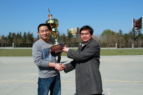 骆永明副所长(主持工作)为冠军队——“博士研究生队”颁发了“大力神杯”,并作了讲话。他对各队在比赛中表现出的团队协作和努力拼搏精神表示赞赏,对获冠军的“博士研究生队”表示祝贺,希望他们在科技创新工作中继续发挥生力军的作用。