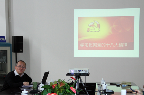 会上,高玲瑜书记组织学习了十八大主题报告的十二大内容,解读了十八大报告中的新意和亮点,从明确一个要求、做到两个坚持、树立三种形象、增强四种能力、加强五大建设等方面分析了党章修订的含义。高玲瑜书记指出党的十八大是在我国进入全面建成小康社会决定性阶段召开的一次十分重要的大会,学习宣传贯彻党的十八大会议精神是当前首要的政治任务,所领导班子成员、党委委员、纪委委员和部门负责人要带头学习,深入领会大会精神,创新开拓、解放思想,服务研究所“一三五”规划的实施与各项工作的顺利开展。