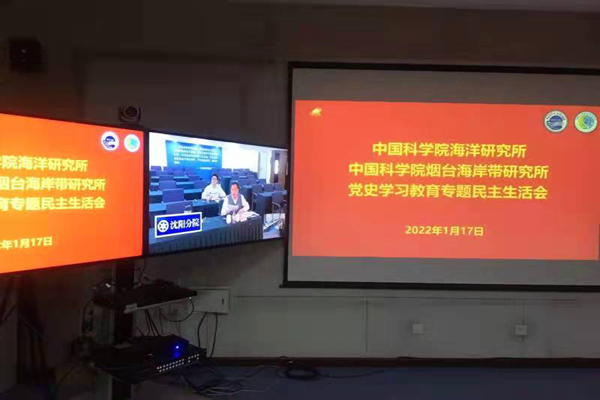 1月17日下午,中国科学院烟台海岸带研究所、海洋研究所联合召开党史学习教育专题民主生活会。中科院党史学习教育第十三指导组因新冠疫情防控原因以视频会议形式参会指导。两所领导班子全体成员参加会议,海洋所党委书记王辉主持会议。