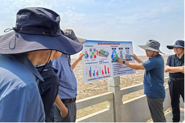 会议期间,与会人员实地考察了黄河三角洲典型盐沼和海草床生态系统负排放技术示范区,深入了解课题研发技术的示范应用情况。