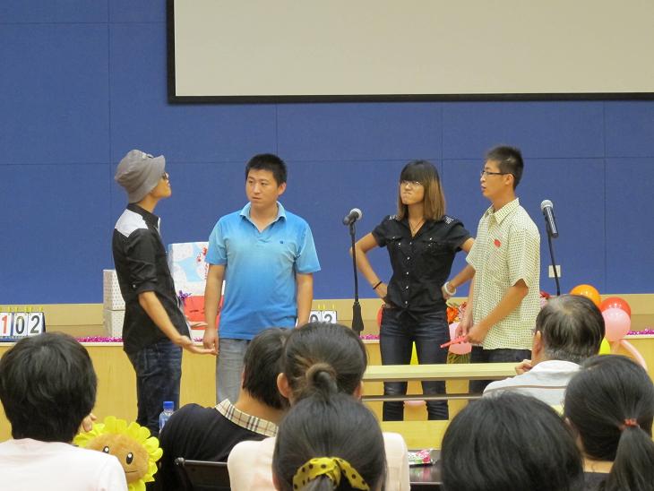 联欢会中,2010级硕士生用一曲温馨的合唱“好大一棵树”,向广大老师致以节日的祝福;滑稽小品“快与慢”则赚足了师生们的笑声;紧随其后的歌曲串烧、吉他独奏等节目精彩纷呈,现场掌声不断。节目之间穿插了小游戏,老师和同学同台参与,共同配合,将气氛推向高潮。
