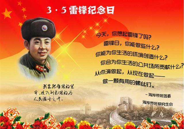 “雷锋日,你能做些什么?”2012年3月5日,烟台海岸带研究所党委、团委、研究生会共同发起了“践行雷锋精神”的倡议。