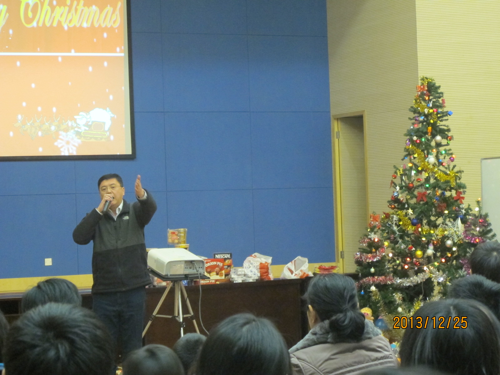 25日晚7点30分,迎新年圣诞联欢会在二楼多功能厅隆重举行。到场的有研究生,部分职工及其家属,王晓斌副所长到会致辞,对全体研究生、职工致以圣诞及新年的问候和祝贺。一首开场曲后,活动迎来了特别的嘉宾,职工子女们组成的小演员代表团自告奋勇进行表演,从《爸爸去哪儿》到《歌唱祖国》,从独唱到伴舞,都赢得了阵阵掌声;活动还邀请了中国农业大学的同学同台演出,他们带来的精彩魔术和舞蹈表演,将活动推向了高潮。晚会过程中,丰富多彩的游戏和抽奖环节,调动了全场观众的热情,大家踊跃参与,表现积极,捧走了众多奖项。