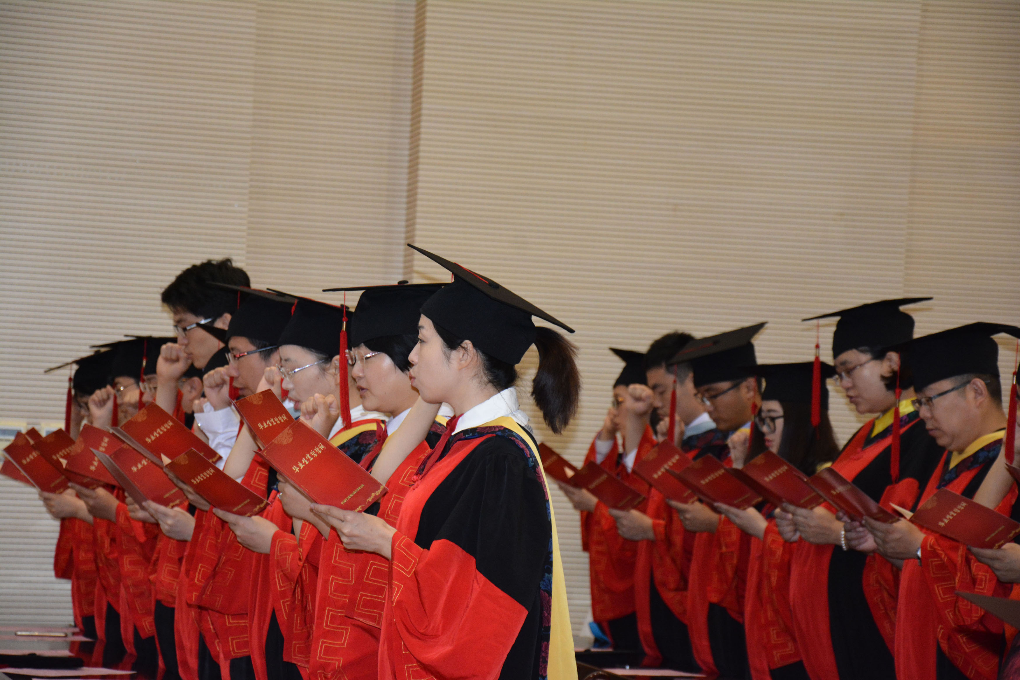 毕业典礼在雄壮的国歌声中拉开帷幕,所有与会人员起立高唱国歌。郭占勇研究员作为导师代表发言,他重温了研究生在所的点点滴滴,感谢大家几年来的坚守与努力,并祝福他们健康、快乐、进步。随后2014级硕士研究生郑翔宇同学作为毕业生代表发言,回顾总结了自己在海岸带所度过的求学和生活的美好时光,对研究所和导师的栽培和帮助表示感谢,并表示将不辜负研究所和导师的期望,用严谨睿智的头脑展现出海岸带人的才华与风采。最后他带领毕业生宣读誓词,为祖国振兴不辞辛苦,为科技创新奋斗终生。