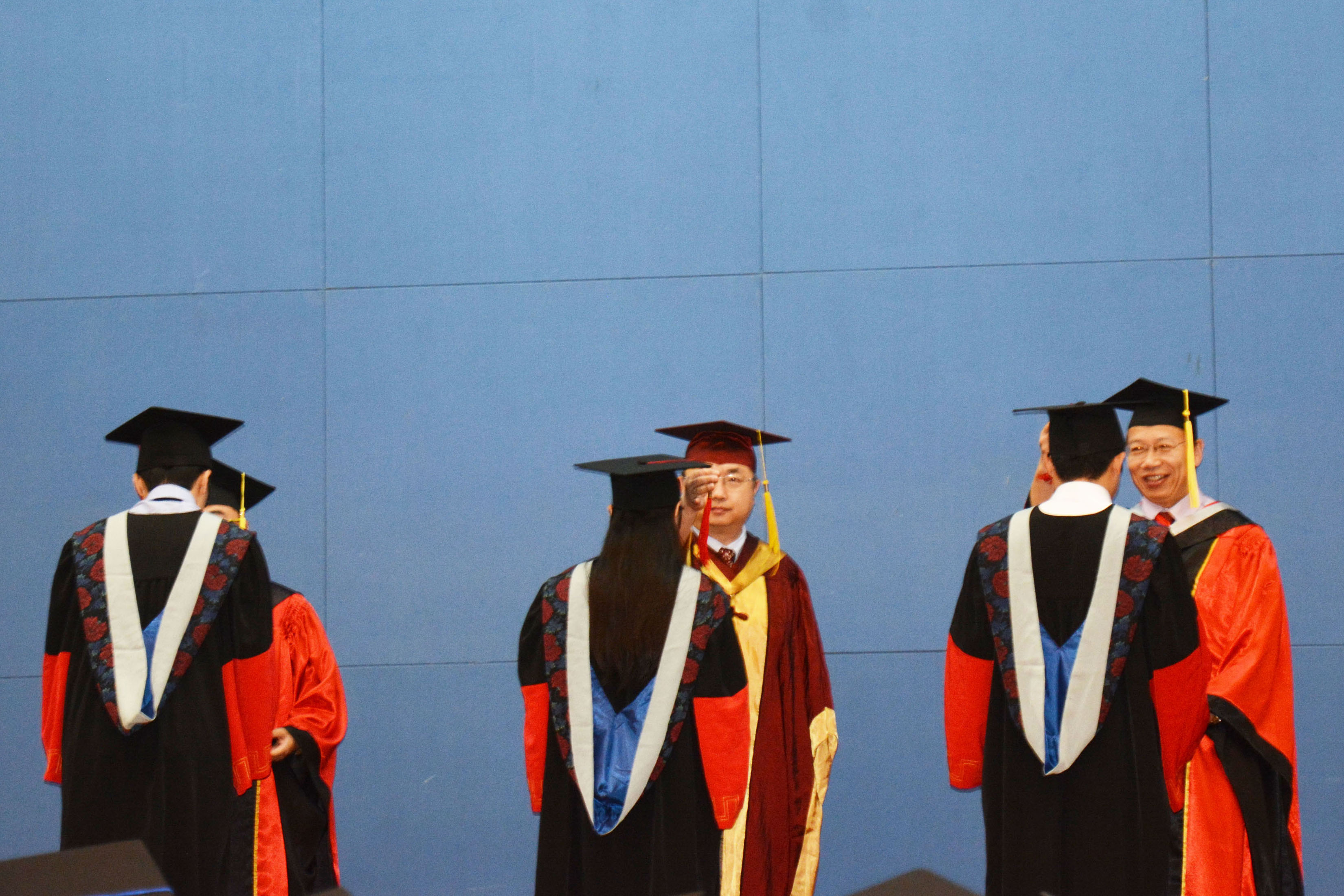 随后学位评定委员会主席王凡,副主席杨红生、李超伦一同为毕业生扶正流苏。王凡所长最后做了毕业致辞,他首先对全体毕业生表示祝贺,肯定了研究生群体在海岸带所科研创新工作中做出贡献,对全所导师和研究生的付出表示感谢,同时对毕业生同学提出四点期望,希望大家不断学习、修身养德,踏实进取、志存高远,希望大家以国家海洋科技建设为己任,成为海洋科技界的弄潮儿。最后,全体毕业生与领导、老师合影留念,毕业典礼圆满结束。