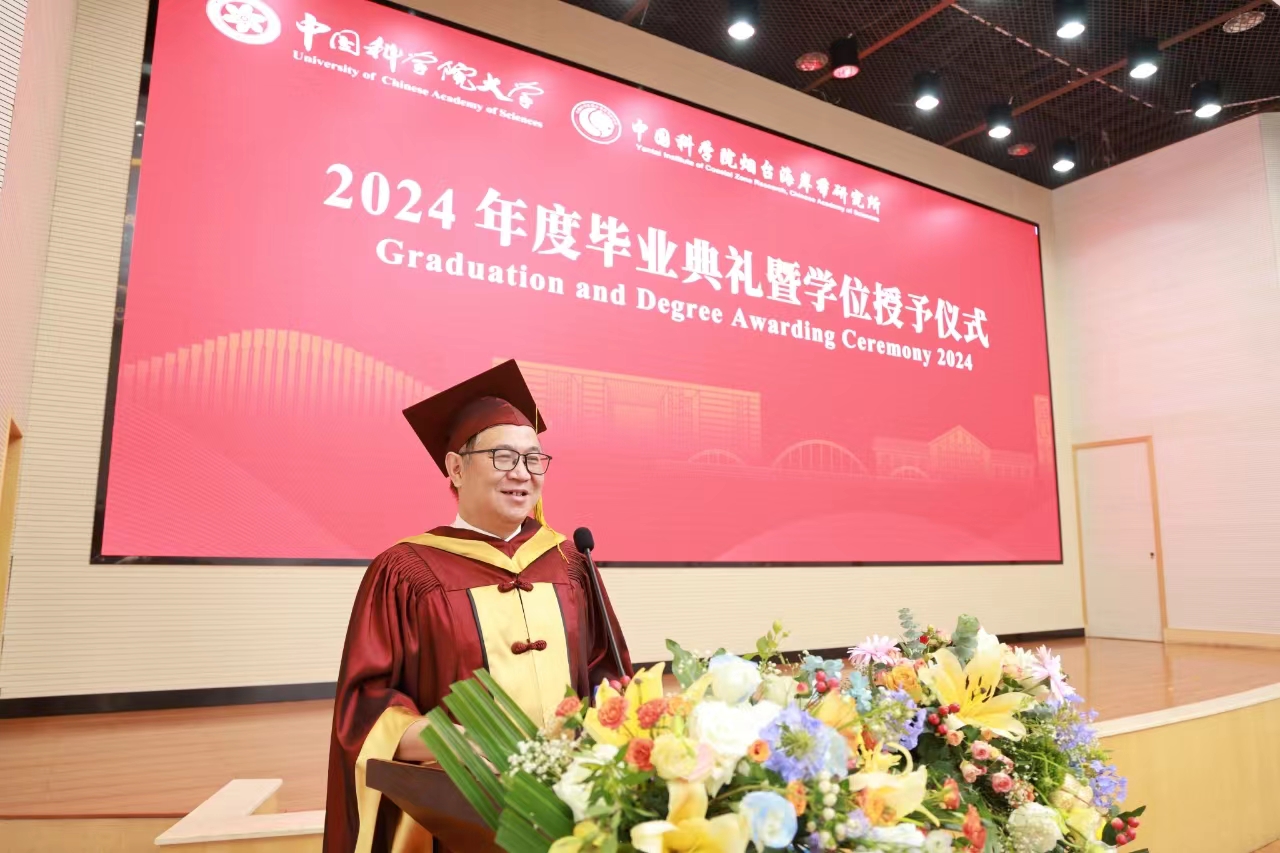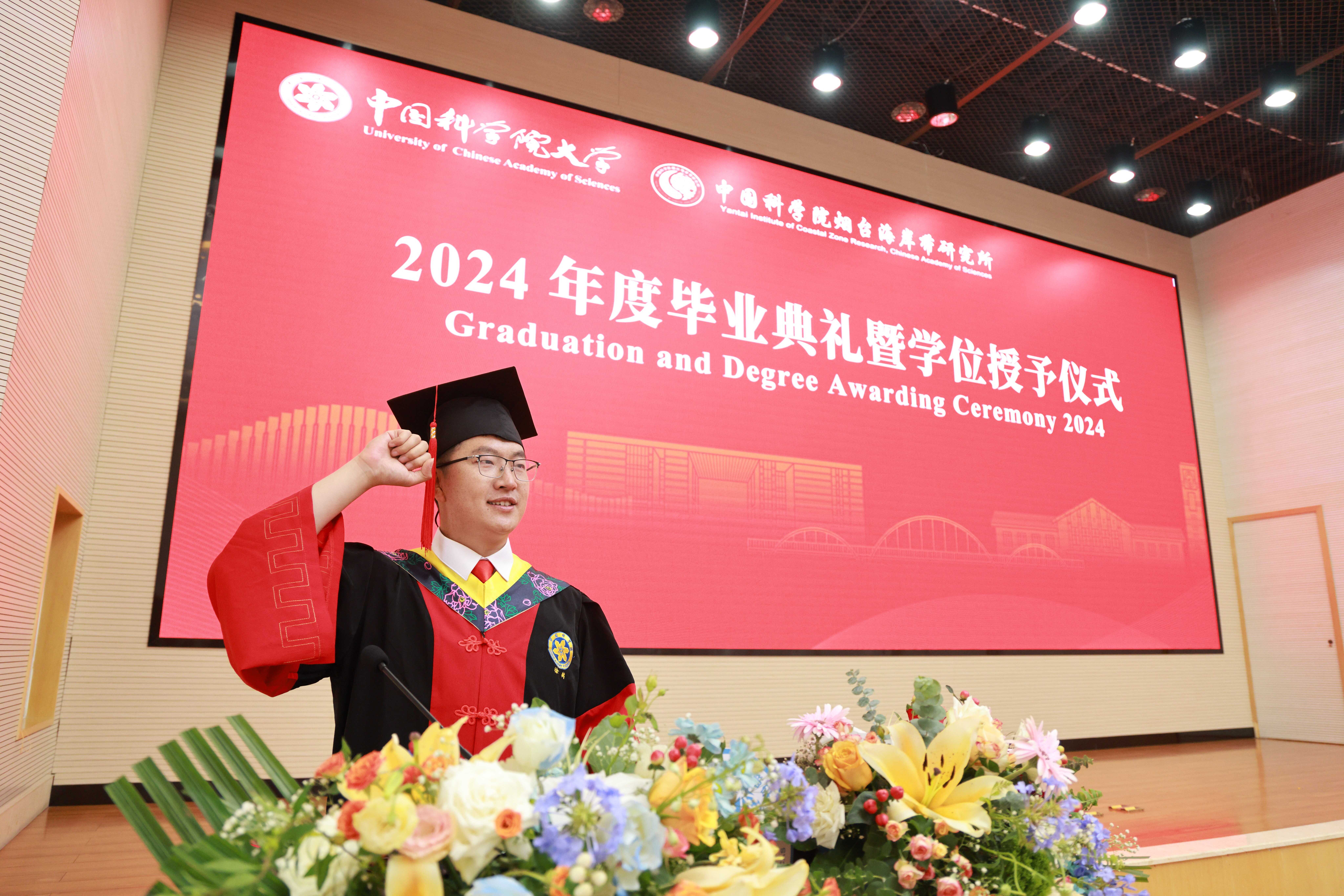 毕业典礼在雄壮的国歌声中拉开帷幕。郭秀银书记主持本次毕业典礼。首先,郭秀银书记宣读优秀学生获奖名单,秦松所长为优秀毕业生颁奖。李佳霖研究员和2024届博士毕业生徐鹤分别作为导师代表和学生代表发言。全体毕业生宣读毕业誓词。