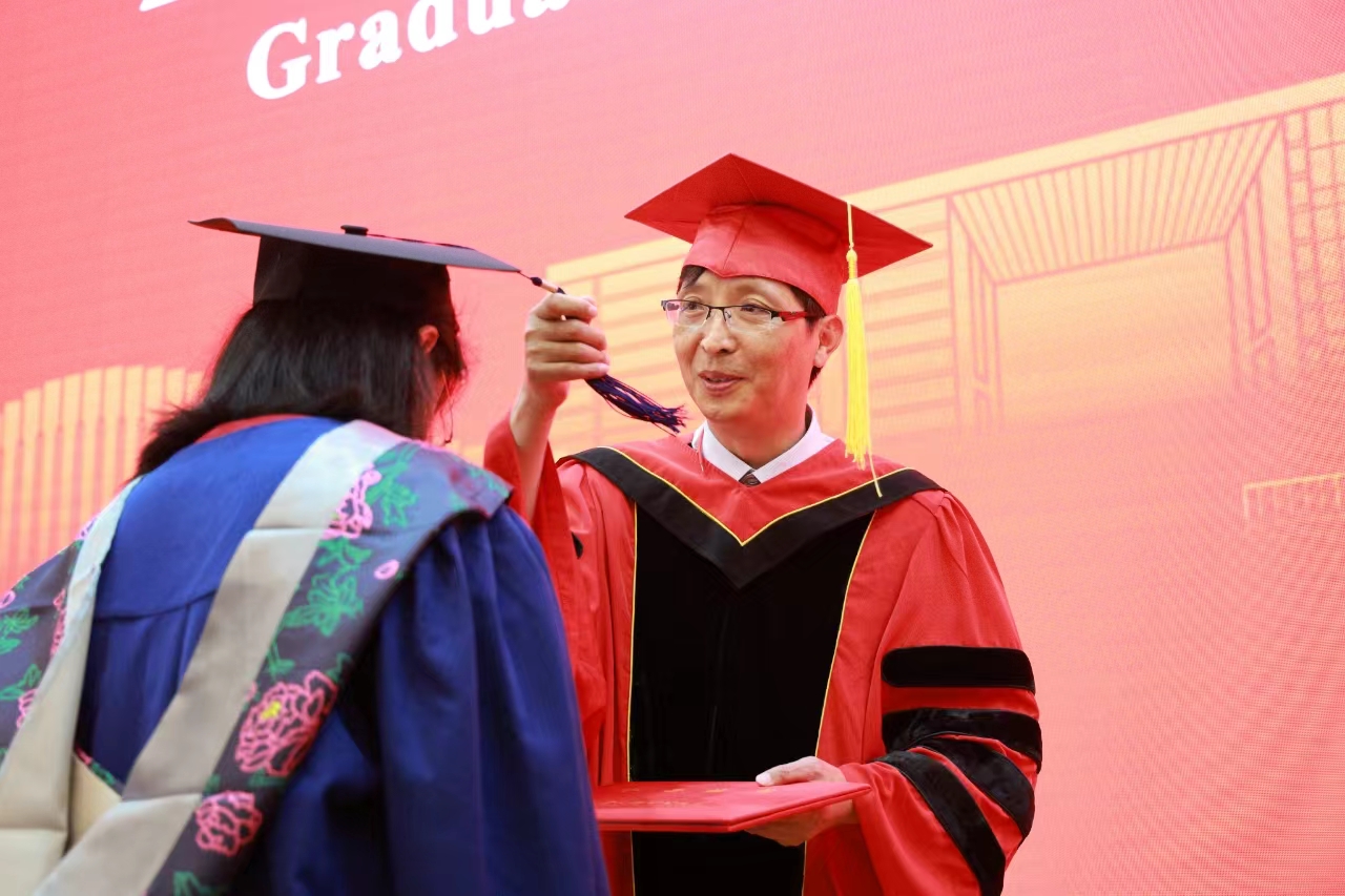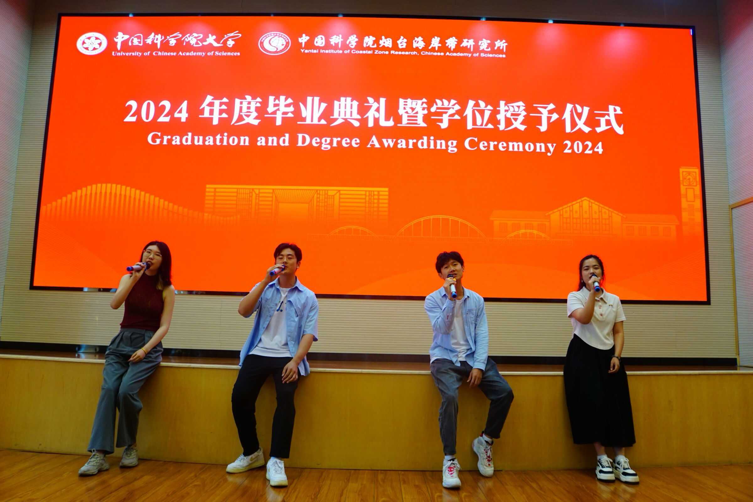 学位评定委员会主席秦松宣读了2024届毕业生学位授予名单,并与学位评定委员会副主席韩广轩一同为毕业生拨正流苏。随后,秦松所长为即将开启新征程的毕业生发表了毕业致辞,对全体毕业生表示祝贺和感谢,回顾了大家在过去取得的成绩,希望同学们“永葆不负人民的家国情怀”,保持崇高的爱国情怀;锤炼实干担当、脚踏实地的品德,在实践中磨砺坚强品格;弘扬敢为人先、开拓创新的精神,在创新的探索道路上不断前行。最后,秦松所长勉励同学们“一切过往皆是序章,人生没有弯路,所有的路途都有它的意义;人生没有白走的路,每一步都算数;一切都是值得的,一切都是最美好的。”随后由硕士研究生周天宇、王天一、单晓雪、孔祥民共同演唱歌曲串烧《红日》、《夜空中最亮的星》、《青春纪念册》,庆祝2024届毕业生顺利毕业。