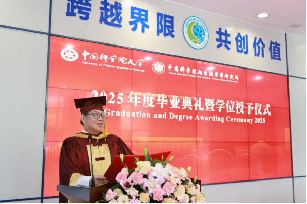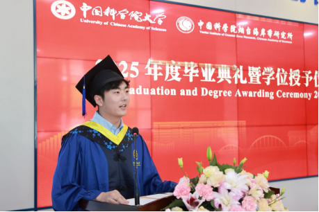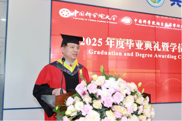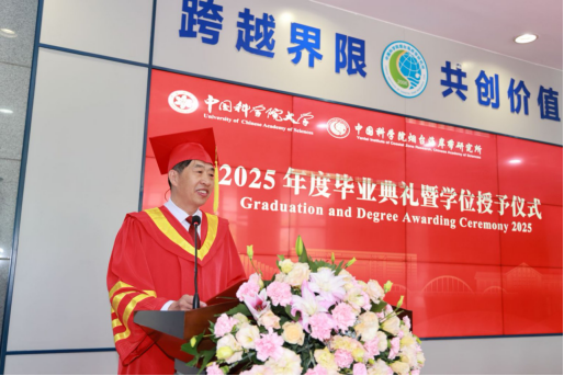 学位评定委员会主席秦松宣读了2025届毕业生学位授予名单,并与学位评定委员会副主席韩广轩一同为毕业生颁发学位证书、拨正流苏。随后,秦松所长为即将开启新征程的毕业生发表了毕业致辞,对全体毕业生表示祝贺和感谢,回顾了大家在过去取得的成绩,希望同学们“始终秉持着严谨求实的科学态度“,勇于探索、敢于创新;在面对更多潜在的挑战和需要探索的未知命题时”百尺竿头,更进一步“,干好“国家事”、担好“国家责”,把自身理想同祖国前途命运紧密联系在一起,“做心怀家国的追梦人,当脚踏实地的奋斗者,成开拓进取的弄潮儿“。最后秦松所长勉励同学们”在中华民族伟大复兴的征程上如激流勇进,不畏艰险;如雄鹰展翅,搏击长空;如苍松挺立,傲雪凌霜。“