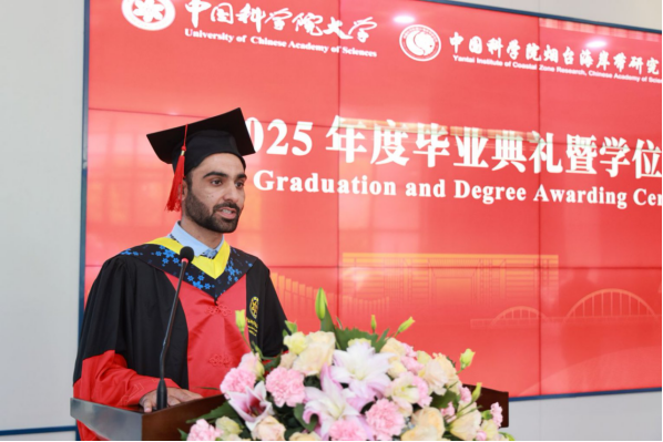 毕业典礼在雄壮的国歌声中拉开帷幕。郭秀银书记主持本次毕业典礼。唐建辉研究员、2025届留学博士毕业生HAMEED ULLAH(安宁)和2025届硕士毕业生孔祥民分别作为导师代表和学生代表发言。唐建辉研究员精彩的发言表达了全体导师对毕业学子的衷心祝福和殷切期望,同时希望毕业生今后能目标导向,不断精进,快速成长,成就自己的人生华章。来自巴基斯坦的留学毕业生代表安宁对所有给予他帮助与关爱的老师、同学、亲友表达了由衷的感谢,他表示今后将继续用实际行动讲好中国故事,讲好“一带一路”的大国传奇,做中巴友谊的桥梁,为促进国际友谊和文化交流贡献自己的力量。孔祥民同学分享了自己从科研新手到独当一面的成长历程,展现了海岸带所优秀青年人才科技报国的坚定信心。随后,全体毕业生宣读毕业誓词。
