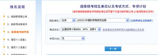 请先在中科院研究生院推荐免试系统(http://zhaosheng.gucas.ac.cn/zhaosheng/tms/index.aspx)中注册申请,同时需在中国研究生招生信息网(http://yz.chsi.cn/)进行网上报名。报考院校及专业选择同统考生。