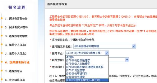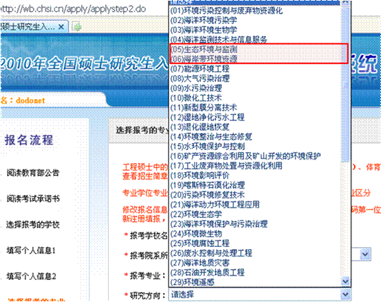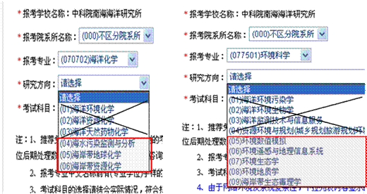 2) 报考研究方向:选择(05)生态环境与监测、(06)海岸带环境资源。