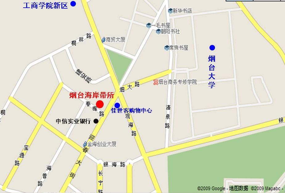 l 从烟台火车站乘50路、55路、86路到中信实业银行(北大青鸟学校)站点下车,往回走50米路口右拐即到。