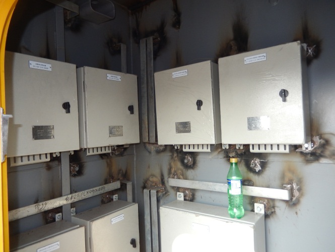 部分分电箱已安装到位(详见附图) 室外投光灯底座安装(详见附图) 监控室区域电缆敷设基本结束(详见附图) 机舱区域电缆正在敷设(详见附图) |