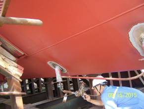 全船甲板设备及系泊设备安装完成 舱室油漆完工 外板船名、水尺、载重线标记安装完成 外板锌块及海底阀箱格栅安装完成 船舶下水完成 船体进入内装及外部舾装安装制作阶段 |