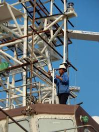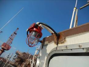 发电机及主配电盘电缆敷设及接线结束,已通岸电,下月发电机动车 室外投光灯及雷达桅杆上设备,通导天线安装结束 主干电缆拉放基本结束 |