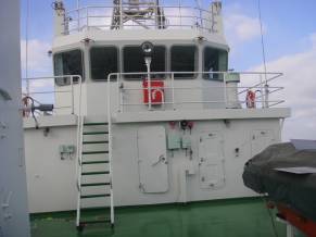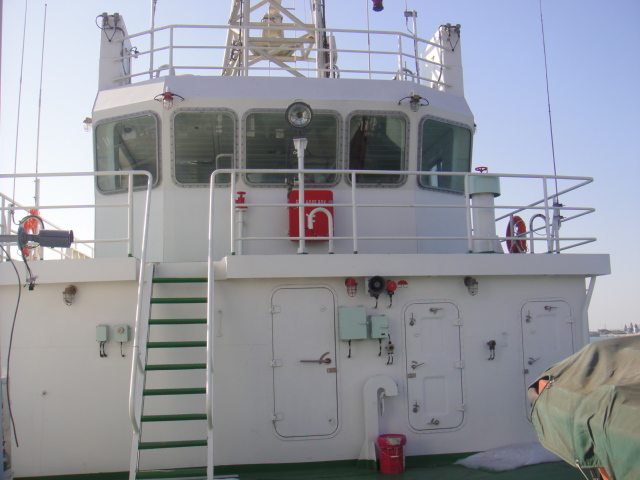 1)、驾驶室、首楼甲板、船员室、餐厅及会议室内装与家具安装完成; 2)、厨房与卫生间的厨具、洁具基本安装完成; 3)、上建、烟囱外板及舷墙内部面漆完成; 4)、罗经甲板、驾驶甲板、艏楼甲板涂装完成; 5)、淡水舱、管隧舱、空舱舱室油漆完成并封船; |