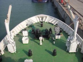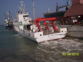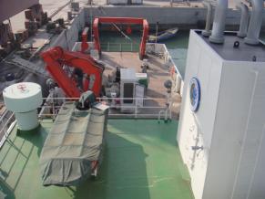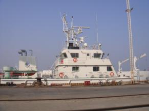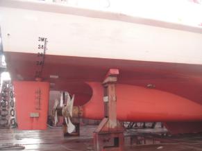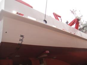 1)船舶碰撞破损区域施工换新完成; 2)折臂吊增加加强及甲板反面加强安装焊接完成; 3)尾部舵机舱增加压载块安放完成; 4)尾部主甲板油漆完成; 5)5#淡水舱油漆破损修补中。 |