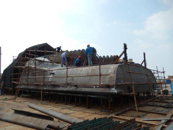 “海岸带综合科考船”建造工作进展2015年5月