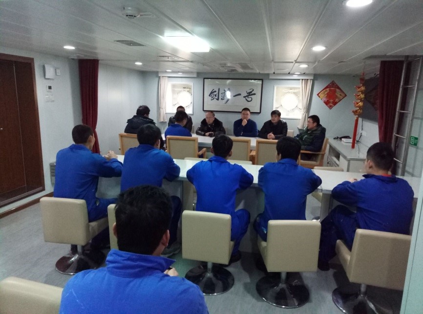 高玲瑜书记代表所党政领导班子成员为全体船员送上新春的祝福和问候。高玲瑜书记指出,“创新一”正式交付使用以来,全体船员尽职尽责,顺利完成了2016年度的科研航次,在此向大家的辛苦付出表示感谢。高玲瑜书记要求,“创新一”近海综合科学考察船的值班人员和分管负责人要密切注意天气情况和船舶设备运行情况;要做到防火、防碰撞、防风、防冻、防人身伤害、防次生伤害;确保节日期间船舶安全。