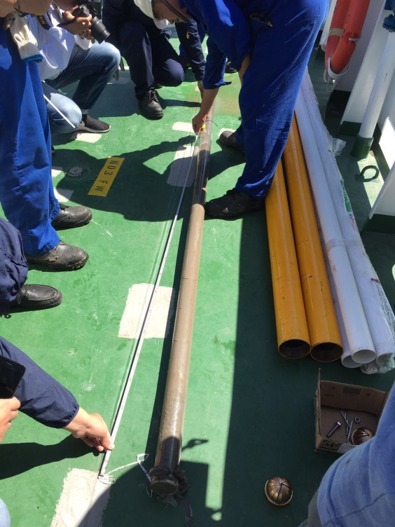 2017年9月23日,野外大型观测设备运营管理中心使用“创新一”号近海综合科学考察船组织验收了振动柱样采样器。本航次共历时1天,航行50多海里,共搭载29人(14名船员、15名设备验收人员),在烟台附近海域使用振动柱样采样器采集2个站沉积物柱样。